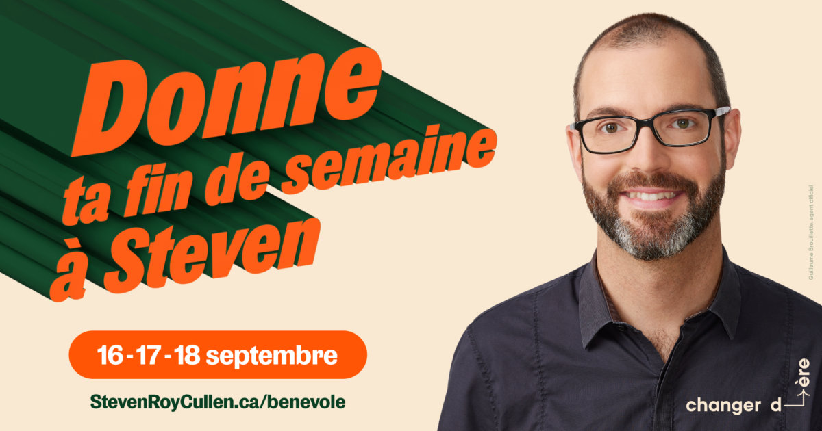Le 16, 17 et 18 septembre, donnez votre fin de semaine à Steven.